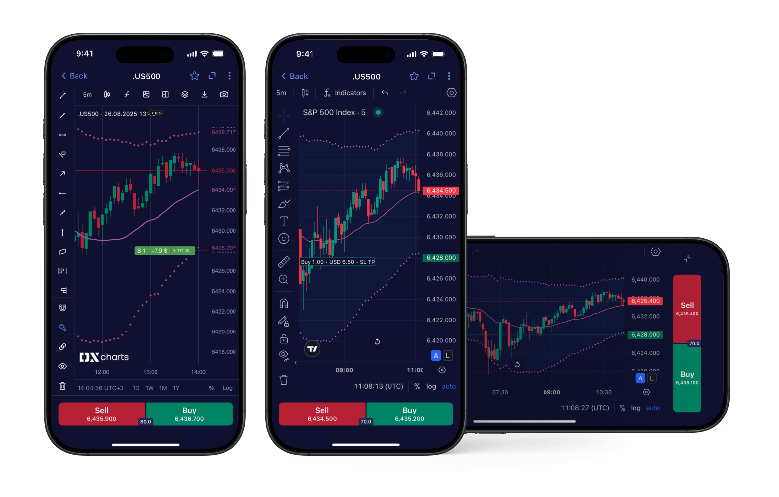 Offer your clients a choice between two professional charting solutions — DX Charts and TradingView — each delivering a sophisticated set of trading indicators and analytical tools. Enhance decision-making with clear visualizations of order and position lines directly on the charts.