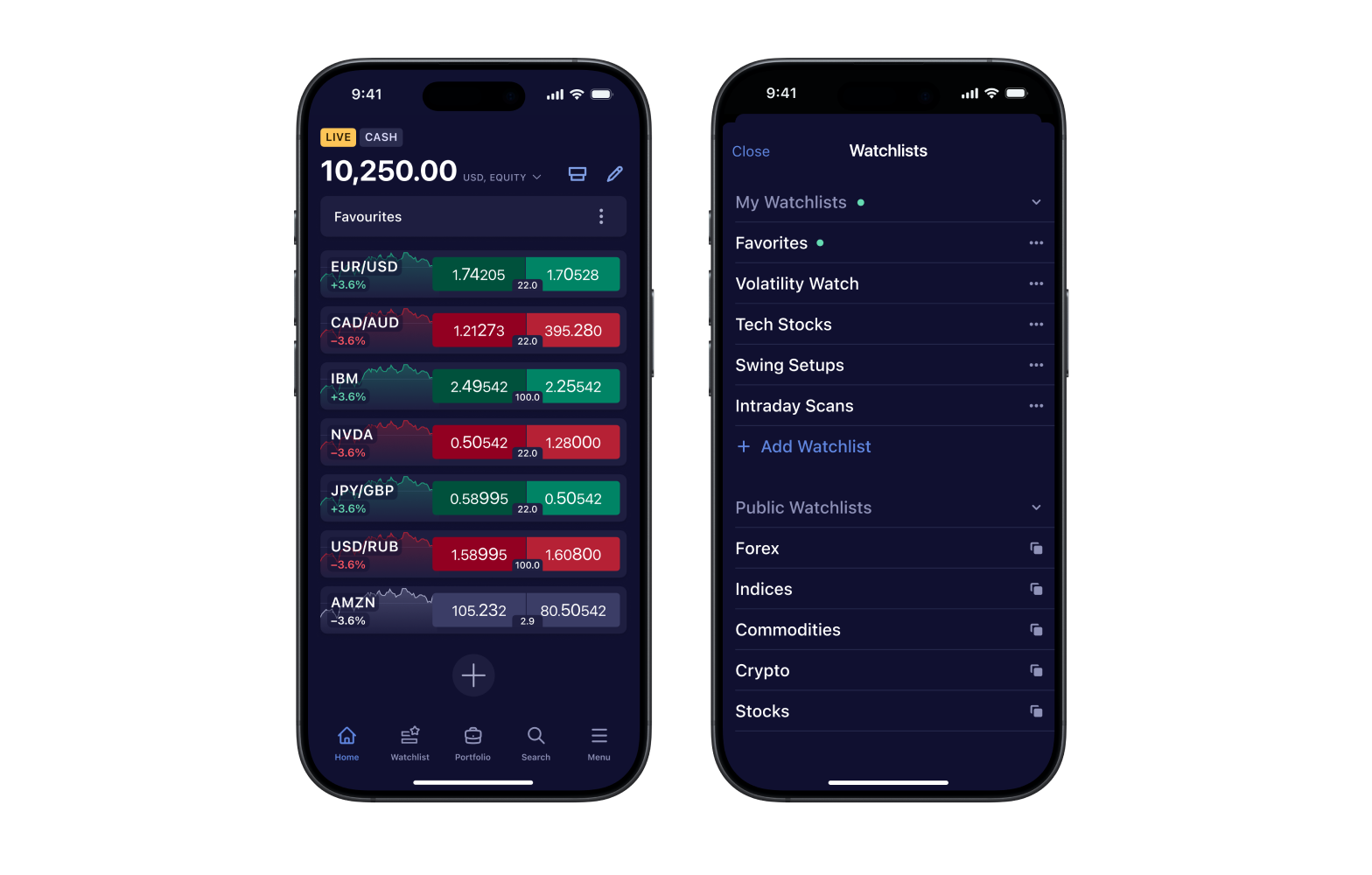 Your clients can create custom watchlists and use a search option to quickly find any instrument available for trading.